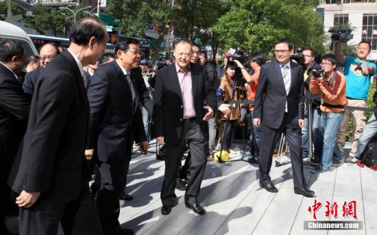 12月1日,海協(xié)會(huì)會(huì)長(zhǎng)陳德銘率團(tuán)參訪宏達(dá)電(HTC)新店總部,受到HTC執(zhí)行長(zhǎng)周永明熱情接待。當(dāng)天,陳德銘在臺(tái)北、新北展開密集行程,活動(dòng)達(dá)九項(xiàng)之多。中新社發(fā) 董會(huì)峰 攝